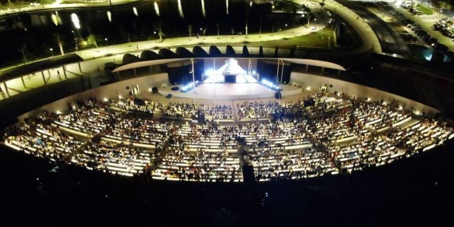 -Vila Dosal y los asistentes presenciaron la puesta internacional que se estará del 28 de febrero al 24 de marzo y será gratis para el disfrute de todos con actos acrobáticos, contorsionistas, rutinas de trapecio y luces led.