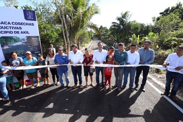En la jornada de este día, el Gobernador entregó en Akil los trabajos de construcción de 4.5 kilómetros de caminos saca cosechas en las unidades productivas de San Isidro Labrador, Plan Chac número 4, Salvador Alvarado pozo número 2 e Independencia número 2, en los que se invirtieron 7.2 millones de pesos y beneficia a 194 productores dedicados al cultivo de cítricos y frutas.