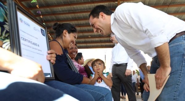 En el primer día hábil del año que recientemente comenzó, Vila Dosal recorrió estos lugares para comenzar con la entrega de los primeros 6.7 kilómetros de caminos rurales saca cosechas en unidades de producción agrícola, dentro de los 73.6 kilómetros que se realizan en 10 municipios del estado con 84.4 millones de pesos, y siguió con la distribución de certificados de vivienda, como parte de las 17,000, entre pisos, techos, baños, cocinas y recámaras adicionales, que se construyen con una inversión de 900 millones de pesos.
