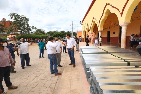 En gira de trabajo por Santa Elena, Ticul y Akil , Vila Dosal encabezó la entrega de los primeros apoyos con un total de 12,015 paquetes alimentarios, 132,426 piezas de láminas de zinc, 48,060 cobertores, 12,015 kits de limpieza y 12,015 de aseo personal, 205,805 paquetes de toallas sanitarias, 59,694 pañales desechables para bebé, 56,857 pañales para adulto y 23,000 mascarillas, que se repartirán entre habitantes de estos 3 municipios y otros 23, que de manera simultánea los comenzaron a recibir hoy.