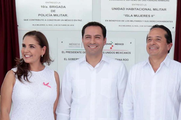 El Gobernador de Yucatán, Mauricio Vila Dosal, acudió a la inauguración de la Décima Brigada de Policía Militar Isla Mujeres, ubicada en la zona continental de dicho municipio quintanarroense, donde también se localizará la Unidad Habitacional Militar “Isla Mujeres II”, obra con 360 hectáreas de superficie, la cual albergará a 3 mil 200 soldados y que se realizó con una inversión de 680 millones de pesos.