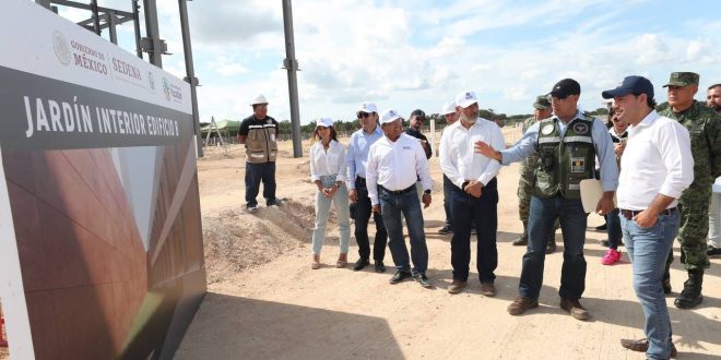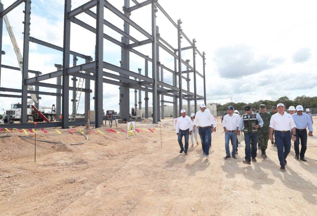 Junto al Jefe del Estado Mayor de la X Región Militar, General de Brigada, Bernardo Reginaldo Reyes Herrera, Vila Dosal observó las áreas donde se levantan los edificios, acceso y estacionamiento principales, helipuerto, patio central, jardines, así como oficinas, entre otras áreas.