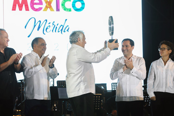 En su mensaje, durante la ceremonia celebrada en el Jardín Pueblo Hacienda del Hotel Princess Mundo Imperial de Acapulco, el mandatario enumeró las diferentes actividades que se pueden realizar en el territorio estatal, como conocer Mérida y su Catedral, considerada como la más antigua en tierra firme en todo el continente americano, y visitar pueblos mágicos como Izamal, que tiene el segundo atrio más grande del mundo solamente detrás de la Plaza de San Pedro.