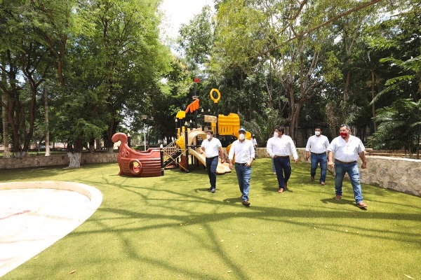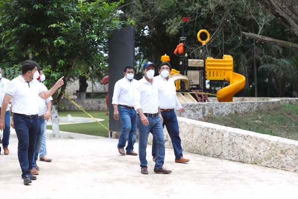 Vila Dosal acudió a este centro de esparcimiento ubicado al oriente del estado para constatar las obras de renovación a sus instalaciones e imagen que, aunque concluyeron en marzo pasado, no ha abierto sus puertas al público en seguimiento a las medidas sanitarias emitidas por las autoridades de salud ante la pandemia por el Coronavirus.