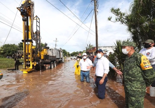 Para ello, el Gobernador instruyó al titular de Sedesol para proveer dos pipas, una para remover el agua estancada y otra de agua potable para uso y consumo, además de una máquina perforadora desarmable para realizar un pozo de desagüe que evitará la acumulación del líquido y dará mayor seguridad a estas familias ante futuras lluvias.