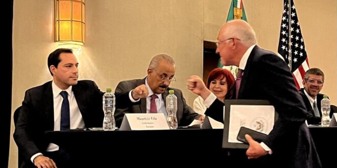 -En el marco de la quinta reunión de Gobernadores del sureste, al que acudió Vila Dosal, y el embajador estadounidense, Ken Salazar, se presentaron los detalles de PROMOSUR, fondo de 30 millones de dólares para promover el desarrollo y las inversiones sostenibles en los estados de la zona.