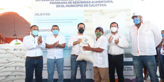 Sobre estas acciones, el titular de la Secretaría de Desarrollo Rural (Seder), Jorge Díaz Loeza, indicó que se entregan en esta demarcación 2,200 sacos del grano, que significan un total de 44 toneladas, en beneficio de las familias de las comisarías y la cabecera municipal de Calotmul.