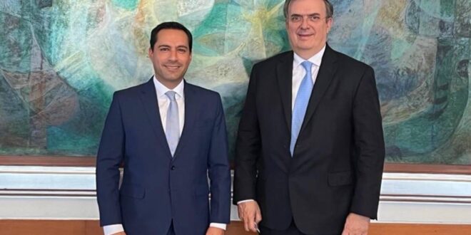 Ciudad de México, 2 de junio de 2022.- El Gobernador Mauricio Vila Dosal se reunió este día con el titular de la Secretaría de Relaciones Exteriores (SRE), Marcelo Ebrard Casaubón, a quien le presentó algunos de los más de 200 proyectos de inversión, por arriba de los 100,000 millones de pesos, por parte de firmas internacionales e incluso globales, que se estarán desarrollando en los próximos años en el estado y que crearán miles de puestos laborales, directos e indirectos.