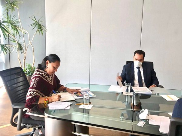 Ciudad de México, 23 de septiembre de 2020.- El Gobernador de Mauricio Vila Dosal se reunió con la titular de la Secretaría del Medio Ambiente y Recursos Naturales (Semarnat), María Luisa Albores González, para revisar los avances en los proyectos que se desarrollan en el territorio como parte de la agenda ambiental conjunta que se impulsa en Yucatán.