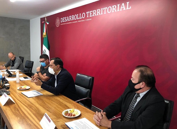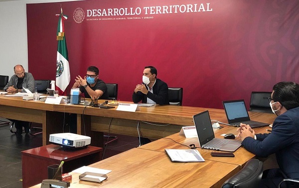 Ciudad de México, 18 de julio de 2020.- El Gobernador Mauricio Vila Dosal le planteó al titular de la Secretaría de Desarrollo Agrario, Territorial y Urbano (Sedatu) del Gobierno Federal, Román Meyer Falcón, la problemática que viven las familias yucatecas, cuyas casas se vieron afectadas por la tormenta tropical “Cristóbal” y que el Fondo Nacional de Desastres Naturales (Fonden) no las está considerando para recibir apoyo, pues de los más de 1,700 millones de pesos de daños en vivienda reportados por los alcaldes de los municipios afectados, el Fonden únicamente reconoció 14 millones de pesos.