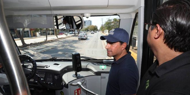 En su paso, constató las obras que se realizaron en este trayecto, que van desde banquetas y guarniciones, así como iluminación, señalética e instalación de paraderos para estos nuevos autobuses.