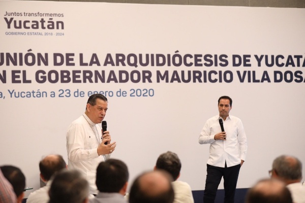 Mérida, Yucatán, 23 de enero de 2020.- Al encabezar una reunión con integrantes de la Arquidiócesis de Yucatán, el Gobernador Mauricio Vila Dosal refrendó su disposición de seguir trabajando hombro con hombro para mejorar las condiciones de las familias yucatecas que más lo necesitan.