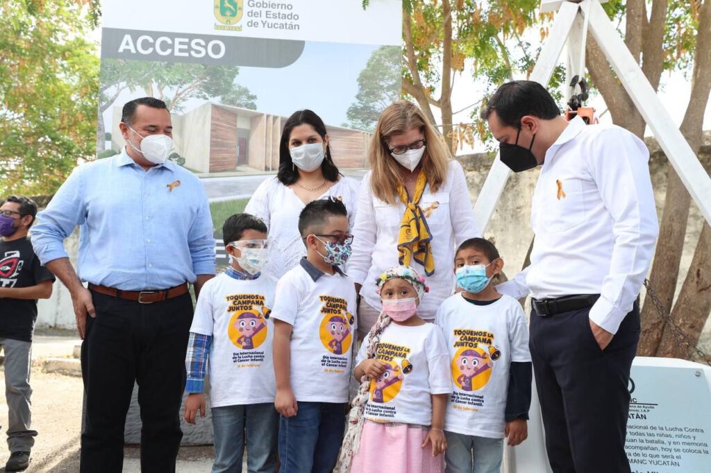 Mérida, Yucatán, 15 de febrero de 2022.- Niñas, niños y adolescentes con cáncer, junto con sus familias, podrán recibir acompañamiento integral durante su tratamiento para vencer esta enfermedad, a través del Albergue de la Asociación Mexicana de Ayuda a Niños con Cáncer (Amanc) Yucatán, cuya construcción pusieron en marcha, este día, el Gobernador Mauricio Vila Dosal y el alcalde de Mérida, Renán Barrera Concha.