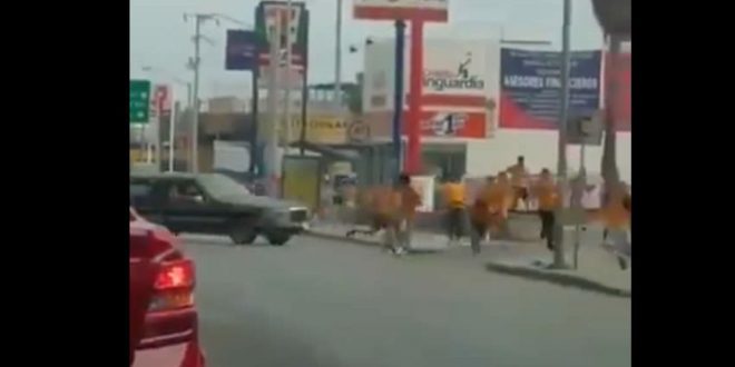 El vehículo, un modelo con varios años de antigüedad, incluso serpenteó por la calle para embestir nuevamente a otros fanáticos de Tigres, quienes logran esquivarlo milagrosamente. Detrás de ello aparecieron decenas de aficionados de la Pandilla, para perseguir a los de la barra rival.