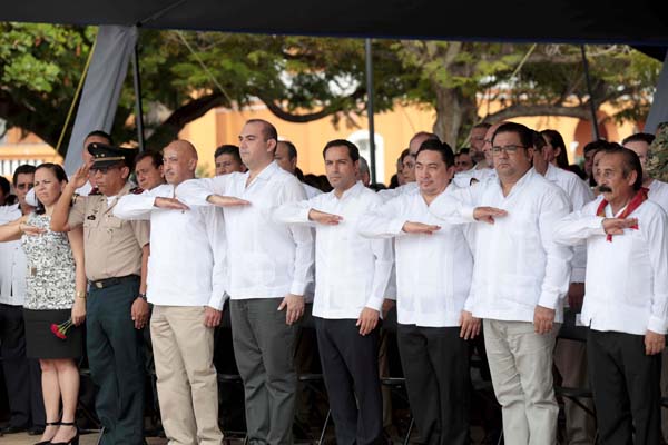 Acompañado del alcalde de este municipio, Roger Aguilar Arrollo, así como de la oradora representante de los Tres Poderes del Estado, Lila Rosas Frías, autoridades civiles y militares, Vila Dosal depositó una ofrenda floral y llevó a cabo la guardia de honor ante el busto del ex Gobernador, ubicado en la plaza cívica de esta demarcación.