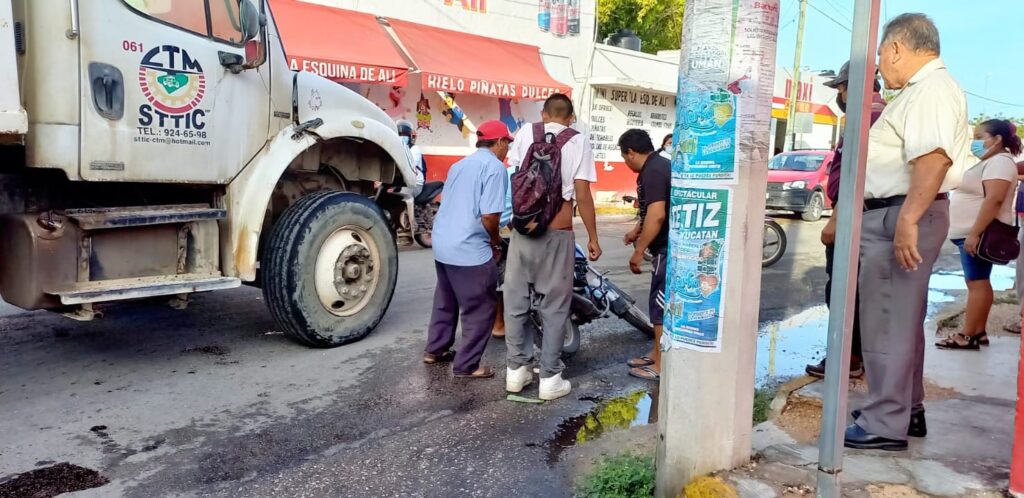 Vivió para contarlo: Motociclista se impacta contra un camión de volteo en Kinchil