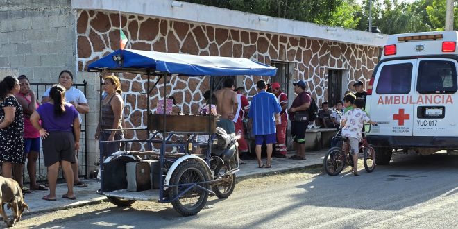 Kinchil, Yuc. a 23 de octubre 2024.- Un gran susto paso una joven familia que estaba a punto de descender a su casa, justo por la colonia la Glorieta, pues terminaron volcando con el mototaxi en el que se transportaban en la calle 25 con 28 y 30 de este municipio.