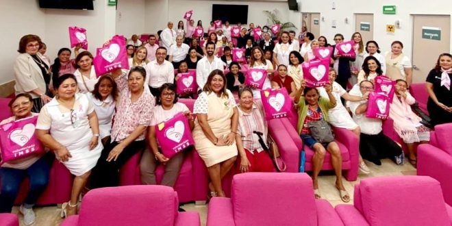 MÉRIDA, Yuc., 18 de octubre 2024.- En el marco del Mes de Sensibilización del Cáncer de Mama, el Voluntariado del Instituto Mexicano del Seguro Social (IMSS) en Yucatán y autoridades institucionales, encabezadas por su titular estatal, doctor Alonso Juan Sansores Río, entregaron 45 Bolsas Rosas a mujeres sobrevivientes de este padecimiento, durante la ceremonia denominada #Soy Rosa IMSS, que se realizó en la Unidad de Detección y Diagnóstico de Cáncer de Mama en la ciudad de Mérida.