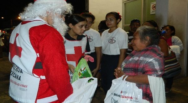 Mérida, Yucatán 26 de diciembre de 2019.- Con lo recaudado por los mismos voluntarios de la Cruz Roja Mexicana Delegación Yucatán, se realizó la entrega de apoyos a personas en condiciones vulnerables en el centro de la ciudad.