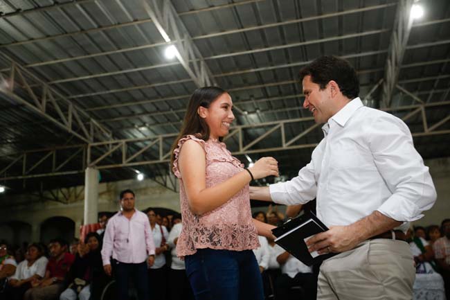 Hunucmá, Yucatán.- “Con 18 años de edad y siendo la primera vez que voy a emitir mi voto, le aseguro que será para usted porque confío y sé que realizará un excelente trabajo apoyando a los que más lo necesitamos”, le expresó Miriam Guadalupe Pech Sonda al precandidato del PRI a la gubernatura del estado, Mauricio Sahuí Rivero.