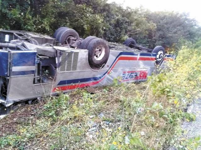El autobús salió de esta ciudad la mañana de este martes con destino hacia Cancún, y aproximadamente a las siete de la mañana, en el tramo carretero mencionado, evadió a una camioneta de turistas que había invadido su carril, por lo que se salió de la carretera y quedó con los neumáticos hacia arriba.