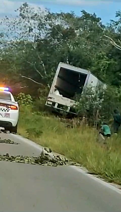 Hasta eso recorrió varios metros dentro la maleza, resultando solo en daños materiales del tortón, cuyo propietario es el empresario pesquero celestunense, Gaspar Marín Couoh (a) “La Blanca”.