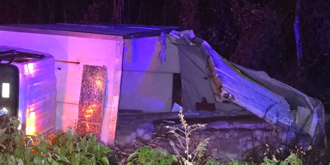 KINCHIL, Yuc., 08 de noviembre 2025.- Una fuerte volcadura sobrellevo el camión que transportaba 3 toneladas de especies marinas en la Kinchil-Celestún, la noche de ayer.
