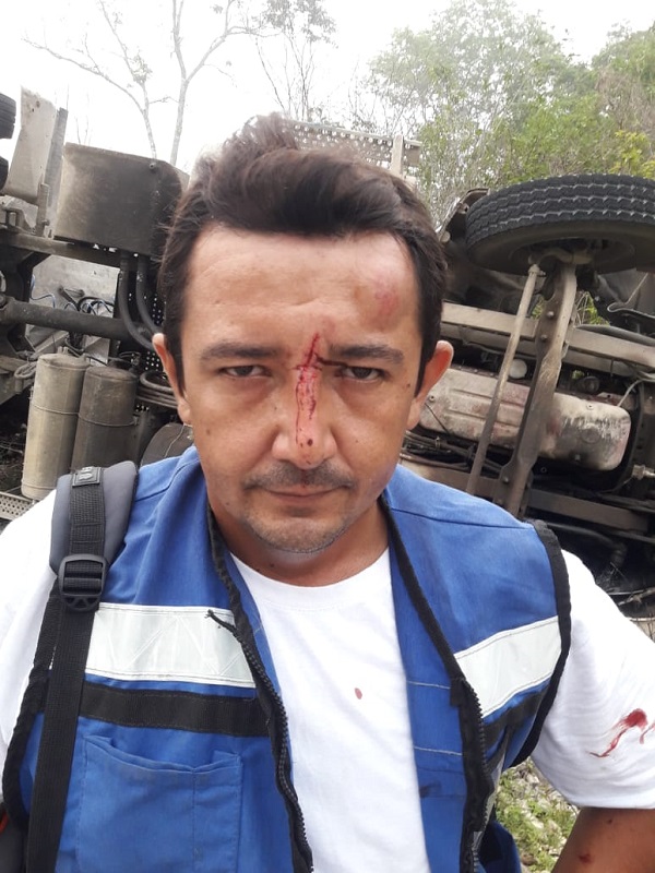 Marco Antonio Gomez Carrillo, de 34 años es el guiador del camión International con una góndola transportaba 30 toneladas de alimento para aves, sin embargo a escasos 300 metros de arribar a la granja avícola de Tixnuc de Samahil, Marco dijo que al querer frenar en la curva, se quedó sin frenos, mismo que originó que perdiera el control de la mole de acero y volcar del costado izquierdo. A la altura del kilómetro 3+500 llegaron agentes de la Policía Municipal de Kinchil y de la SSP, para abanderar el accidente ocurrido minutos después de las 7 de la mañana.