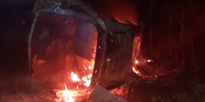 A pesar de que los conductores intentaron sofocar el incendio tirando tierra, no lo lograron y el fuego se propagó, en toda la unidad. Al poco rato llegaron al sitio los bomberos que sofocaron el fuego cuando el vehículo ya se había calcinado.
