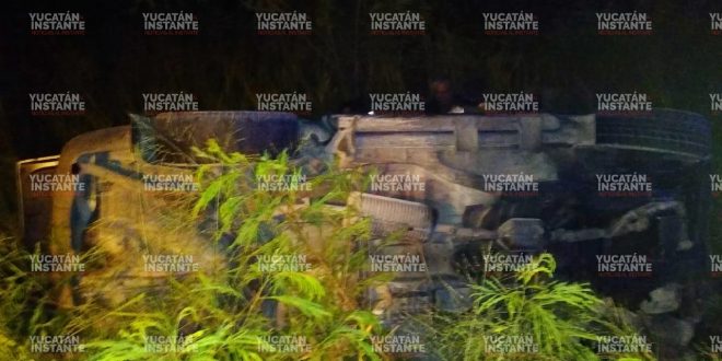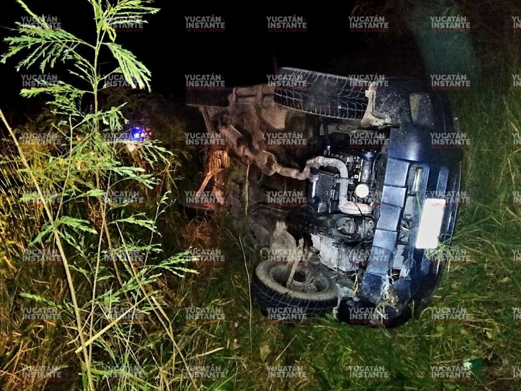 Hunucmá, Yuc., 04 de octubre 2022.- Por manejar presuntamente bajo los influjos del alcohol, el hermanito del edil del vecino municipio de Ucú, acabó volcando con su camioneta la noche de ayer lunes en el tramo Hunucmá-Ucú.