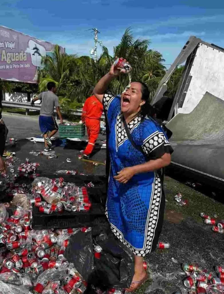 Él sufrió lesiones y los remolques se dañaron, tirando gran parte de su producto. En cuestión de minutos decenas de personas de la zona llegaron en vehículos o a pie, para llevarse todas las cervezas que pudieran cargar.