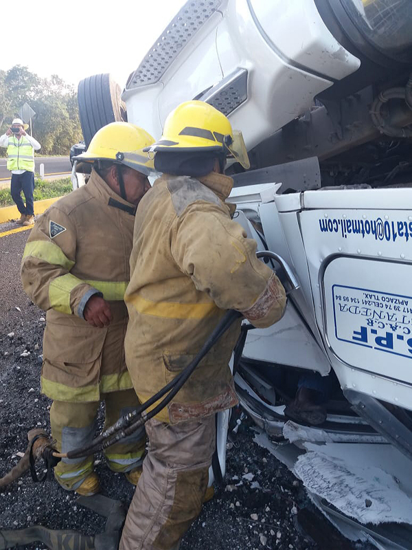 Adrian Muguier de 43 años transitaba de Mérida a Campeche a bordo de un tracto camión Kenworth con remolque y al llegar al tramo mencionado perdió el control del volante y se salió del camino pero al intentar incorporarse de nuevo a la vía quedó volcado sobre su toldo.