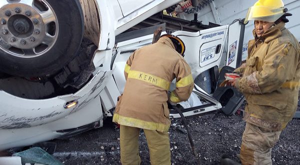 EL CONDUCTOR QUEDA ATRAPADO SOBRE DENTRO DE LA CABINA Y ES RESCATADO POR BOMBEROS Y PARAMÉDICOS