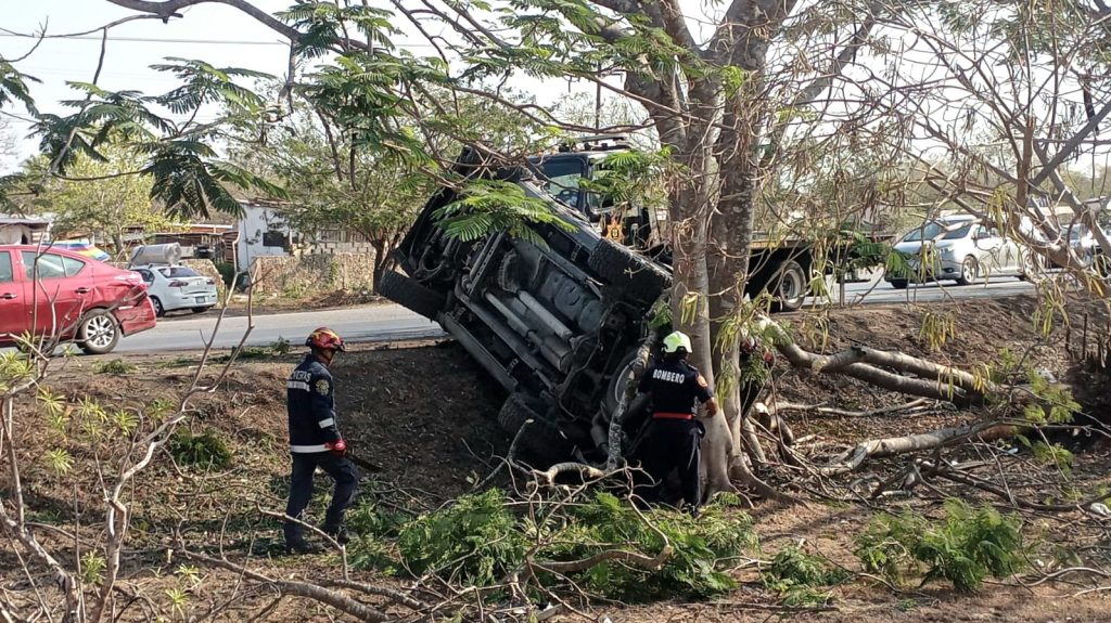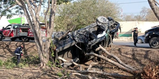 Home / Destacada policía / Vuelca y destroza su camioneta en Periférico de Mérida