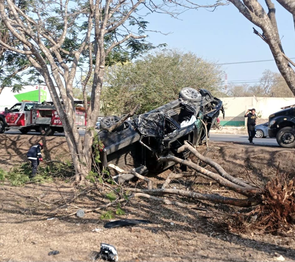 Vuelca y destroza su camioneta en Periférico de Mérida