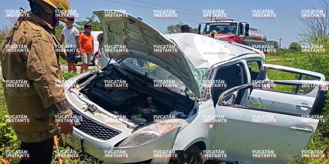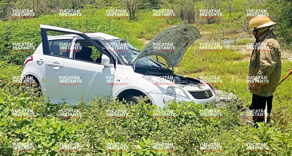 Celestún, Yuc., a 18 de agosto 2022.- Una volcadura más en la vía federal Kinchil-Celestún, se trata de una familia que dirigía a visitar el puerto de Celestún, a bordo de un automóvil Suzuki pero “mordieron” la orilla de la carpeta asfáltica para provocar su salida y dar al menos dos volteretas en montes de este municipio costero.
