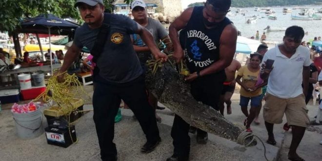 El coordinador de Protección Civil, Cuauhtémoc Gayoso reconoció que la captura del reptil, que mide más de dos metros, fue complicada, debido a que estaba en mar abierto, por lo que implementaron un operativo.