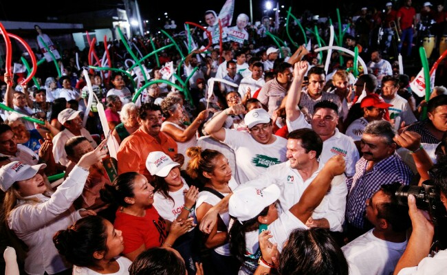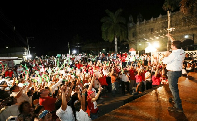 Telchac Pueblo, Yucatán- Cobijado por el respaldo ciudadano manifestado en las calles de Telchac Pueblo, el candidato del PRI, PVEM y Panal a la gubernatura, Mauricio Sahuí Rivero fue enfático en señalar: ya ganamos la campaña, ahora vamos por la elección.