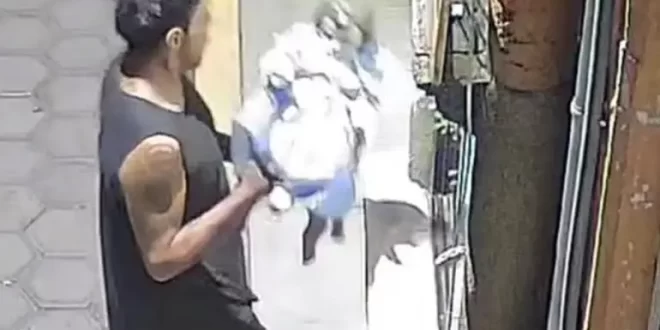 El reloj marcaba las 2:25 de la madrugada, en la imagen se observa la calle solitaria, segundos después aparecen dos sujetos caminando, uno de ellos se detiene frente a la capilla, en ese momento se observa que el ladrón estira los brazos, toma al niño Dios, logra sacarlo de la capilla con todo y silla y se lo lleva tranquilamente, sin prisa, se va caminando por la calle.