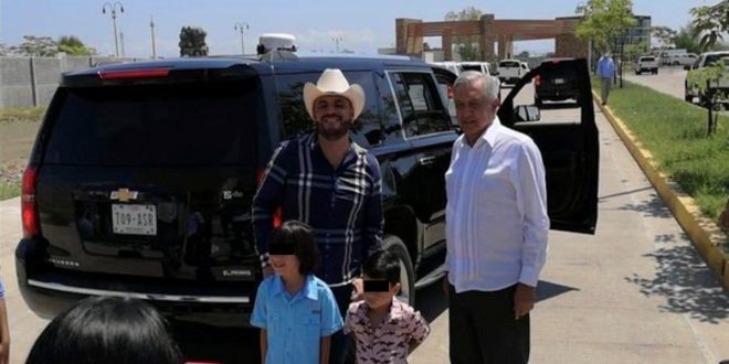 Al finalizar su segundo evento en Culiacán, el presidente Andrés Manuel López Obrador descendió de su camioneta para fotografiarse con el cantante Alfredo Ríos, mejor conocido como “El Komander”, reconocido por interpretar narcocorridos.