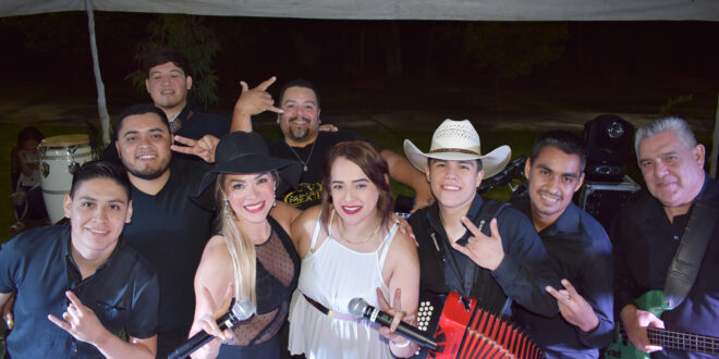 Yoanna Divauna en compañía de Evy y su grupo Mextizo al concluir la primer presentación de la noche.