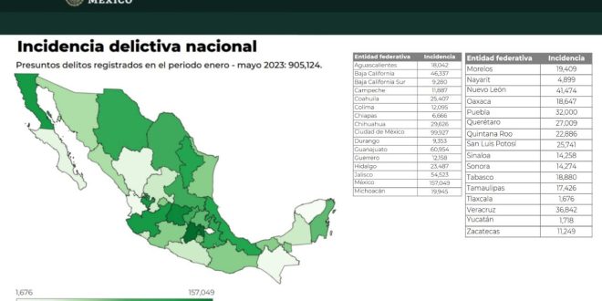 -En mayo se registraron en la entidad 73.66 delitos por cada 100,000 habitantes, cifra que es nueve veces menor a la registrada a nivel nacional, de 689.72.