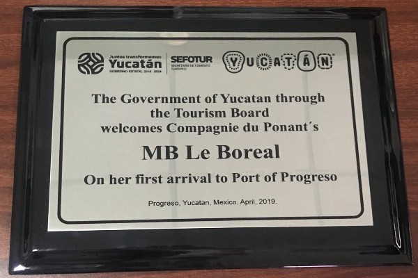 En el acto, llevado a cabo esta mañana a bordo del Le Boreal, se realizó el tradicional intercambio de placas con motivo del primer arribo, otorgadas por parte del Gobierno del Estado y la API Progreso, la cual contó con la participación de oficiales y directivos de dicha embarcación de bandera francesa, construida en 2010, encabezados por el capitán y los primeros mandos. Posterior al protocolo, las autoridades y miembros de la flota recorrieron el navío.