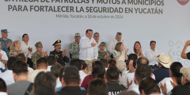 Como se recordará, el gobernador Joaquín Díaz Mena encabezó el pasado sábado 26 la entrega de 48 unidades policiales a 37 municipios de Yucatán, 38 patrullas y 10 motocicletas para seguir fortaleciendo la seguridad en Yucatán.