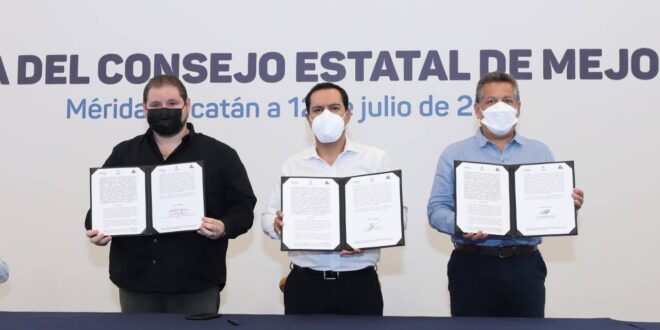 En ese marco, el Gobernador Mauricio Vila Dosal y el alcalde de Mérida, Alejandro Ruz Castro, firmaron un Convenio de Colaboración para la vinculación, en un portal digital único, de los trámites municipales y estatales para la apertura de negocios, con lo que Yucatán se reitera como referente nacional e internacional en mejora regulatoria y simplificación de trámites. Con ello, se pone en marcha la agenda de trabajo para la segunda etapa de la Ventanilla Digital de Inversiones.