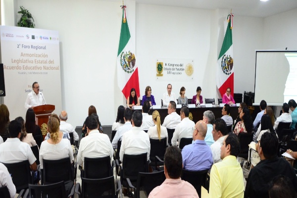 Mérida, Yucatán, 7 de febrero de 2020. – El Congreso del Estado fue sede del Segundo Foro Regional de Armonización Legislativa Estatal del Acuerdo Educativo Nacional, proceso colaborativo para la construcción de 32 nuevas Leyes de Educación acordes a la realidad nacional y a los contextos regionales y locales en la prestación del servicio educativo.