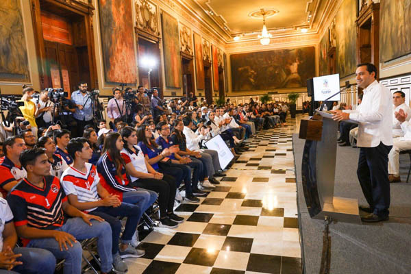 En su mensaje, dirigido a la comunidad estudiantil de las universidades Anáhuac-Mayab, Autónoma de Yucatán (UADY), Privada de la Península (UPP), Marista y Modelo, el Gobernador señaló que para este magno evento se pondrán a disposición las instalaciones deportivas de primer nivel, como es el Complejo Deportivo Kukulcán, el Poliforum Zamná, el estadio “Carlos Iturralde” y el estadio “Salvador Alvarado”, el cual fue sometido a trabajos de remodelación integral con una inversión aproximada de 76 millones de pesos, por lo que para dichas fechas estará completamente listo.