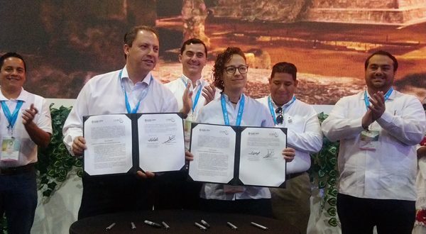 En el imponente stand de Yucatán, Fridman Hirsch y Cristian Berger, de la Asociación de Comités, signaron un documento para continuar con la promoción y el mejoramientos de la infraestructura en dichas localidades. El secretario de Turismo de Campeche, Jorge Manos Esparragoza, y Rosa del Carmen Nava López, secretaria del Comité Nacional Vocal de esa organización, fungieron como testigos.