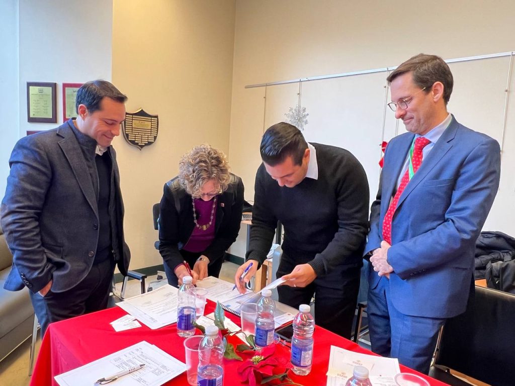 -También, Vila Dosal realizó la firma de convenio con la Organización Navitas Global para extender las opciones de los estudiantes para sus estancias en el extranjero para aprender inglés.