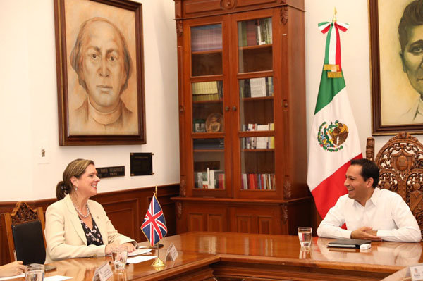 En el Salón de los Retratos de Palacio de Gobierno, Vila Dosal recibió la visita de la diplomática británica, quien manifestó que las autoridades de su país tienen un gran interés por estrechar los lazos de operación con el estado, toda vez que Yucatán y su Gobernador destacan por su liderazgo en México.